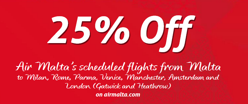 Air Malta is currently offering 25% off flights between Malta and a select number of European destinations (including London).