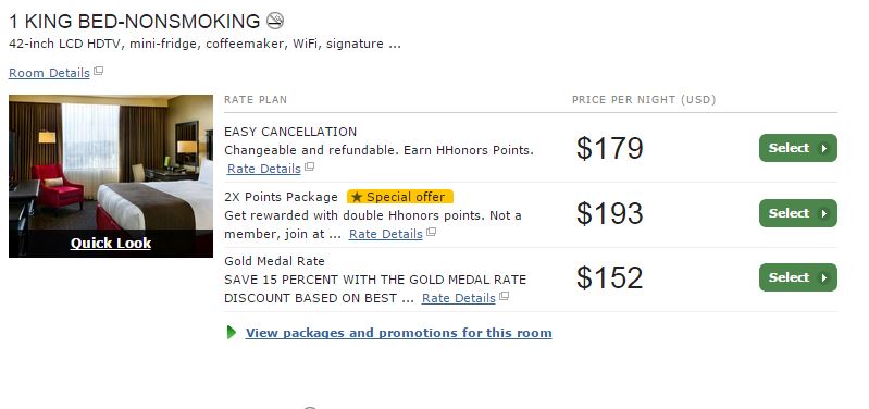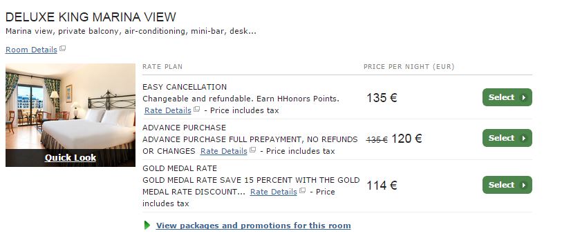Hilton hotels has long been running what it calls a “gold medal rate”. It’s pretty straightforward: it’s a Hilton discount code that will give you a further 15% off the “best available rate”.