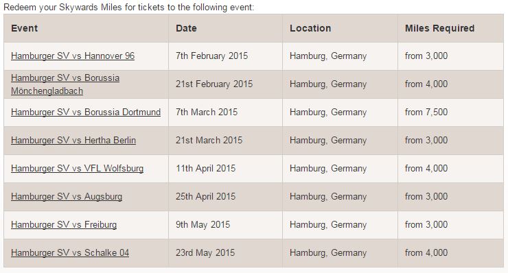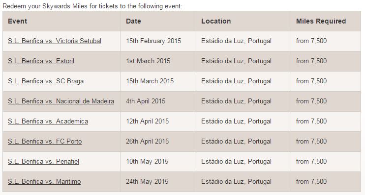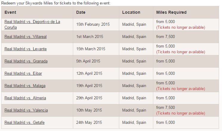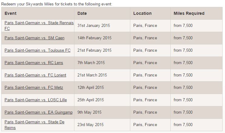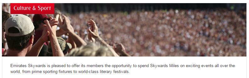 Simply click on this link and then log in to Emirates Skywards. You will be taken to the grandly-titled Emirates “Culture and Sport” section which sets out Emirates Skywards partners in this sector although, at present, it only offers football tickets (but an impressive range of them, it has to be said).