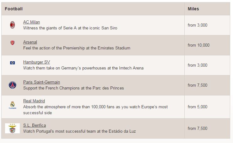 One little known benefit of the Emirates Skywards frequent flyer programme is that, through Emirates’ extensive football sponsorship, you can use it to easily buy football tickets at European heavyweight teams AC Milan, Real Madrid, Arsenal, Paris St Germain, SV Hamburg and Benfica.