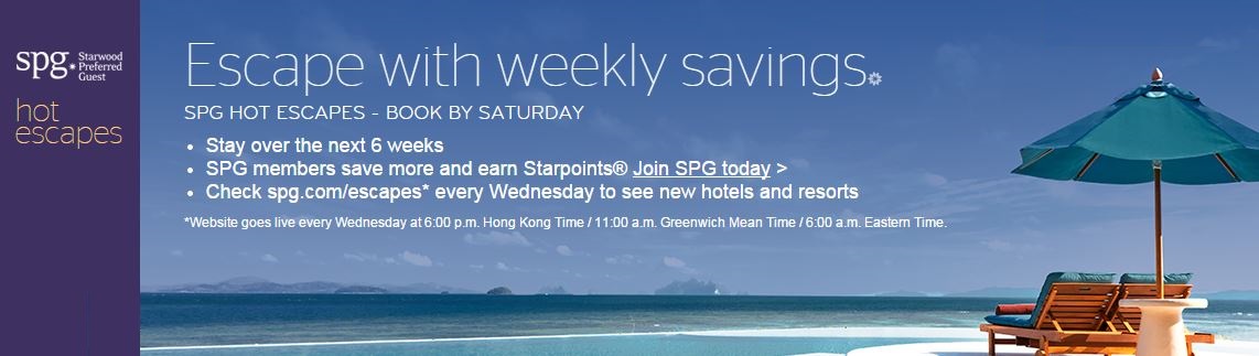 Starwood SPG Hot Escapes – up to 61% off Starwood hotels globally