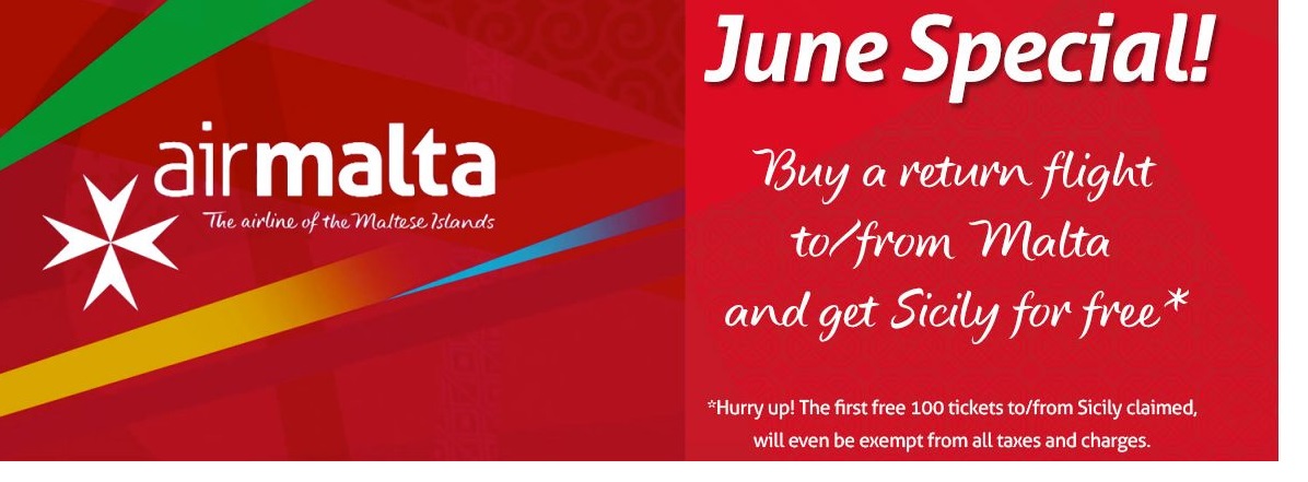 Air Malta has just released details of an interesting promotion. Book an Air Malta flight to/from Malta (travelling in June 2015) by 11:59 CET+1 on 12 May and you will also get a free return ticket between Malta and Catania (Sicily), also for travel in June.