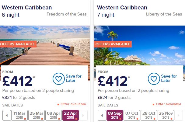 With this offer, there’s a vast number of heavily discounted cruises, but perhaps the standouts are the Caribbean cruises for as little as £412 all-in. Bear in mind that’s subject to 5% cashback too, so the final price will be sub-$400.